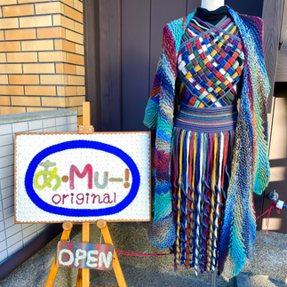 いろんな色を使った、個性的なワンピースを飾って、皆さまをお出迎えです